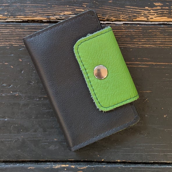 Neulalompakko on valmistettu nahasta. Sen sisälle on ommeltu pala huopaa, johon saa kiinnitettyä päättelyneulat ja hakaneulat talteen. Kummallakin sivulla huovan alla on avotasku, johon mahtuu esimerkiksi pienet sakset tai silmukkamerkkejä. Lompakon sulkimena toimii nahkainen läppä, jossa on neppari. Kotelo on kauniin ruskeaa tai mustaa nahkaa, ja läpän väri tuo sille ilmettä. Huovan väri on valittu sopimaan läpän väriin.